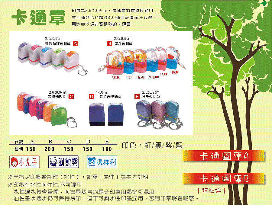 印章類:公司大小印章、肚臍印章、神明印章、官章、結婚對章、印章禮品、橡皮章、連續章、會計章、發票章、日戳章、翻轉章、私章、鋼印、日期章、卡通章、果凍章、鎖圈章、印鑑